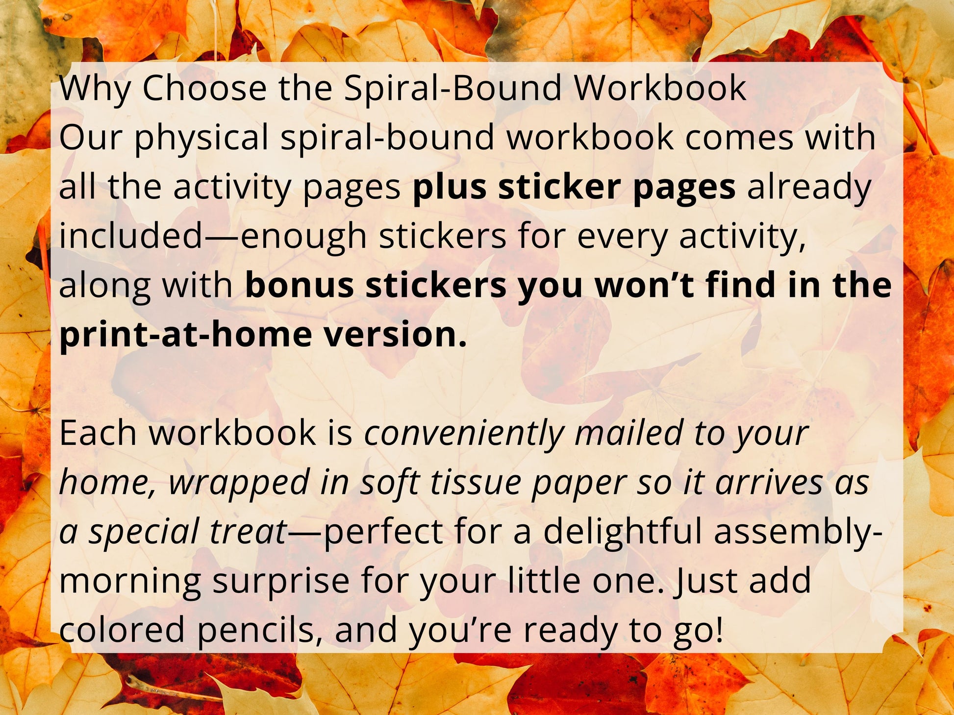 Inside you’ll find 22 full-color activity pages plus 2 full pages of coordinating stickers (and bonus stickers!), and a personalized cover! Children can color, trace scriptures, do mazes, match pictures, and solve puzzles—then use the included stickers to complete activities. It’s the same thoughtfully designed content as our digital version, but already printed, bound, real stickers and ready to open. All you need is colored pencils or crayons.