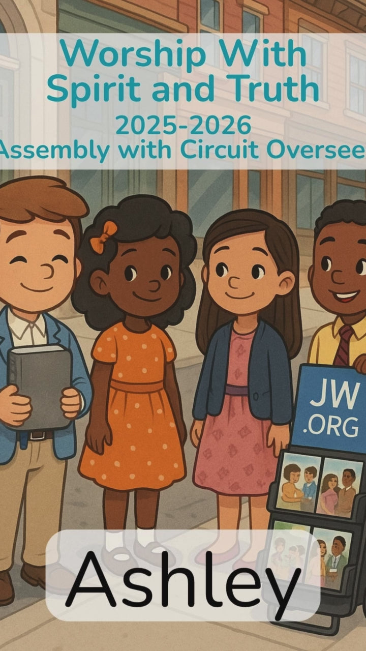 Each of the 26 full-color pages follows the 2025–2026 Circuit Overseer Assembly program (John 4:24), helping JW kids connect what they hear with what they color and do.