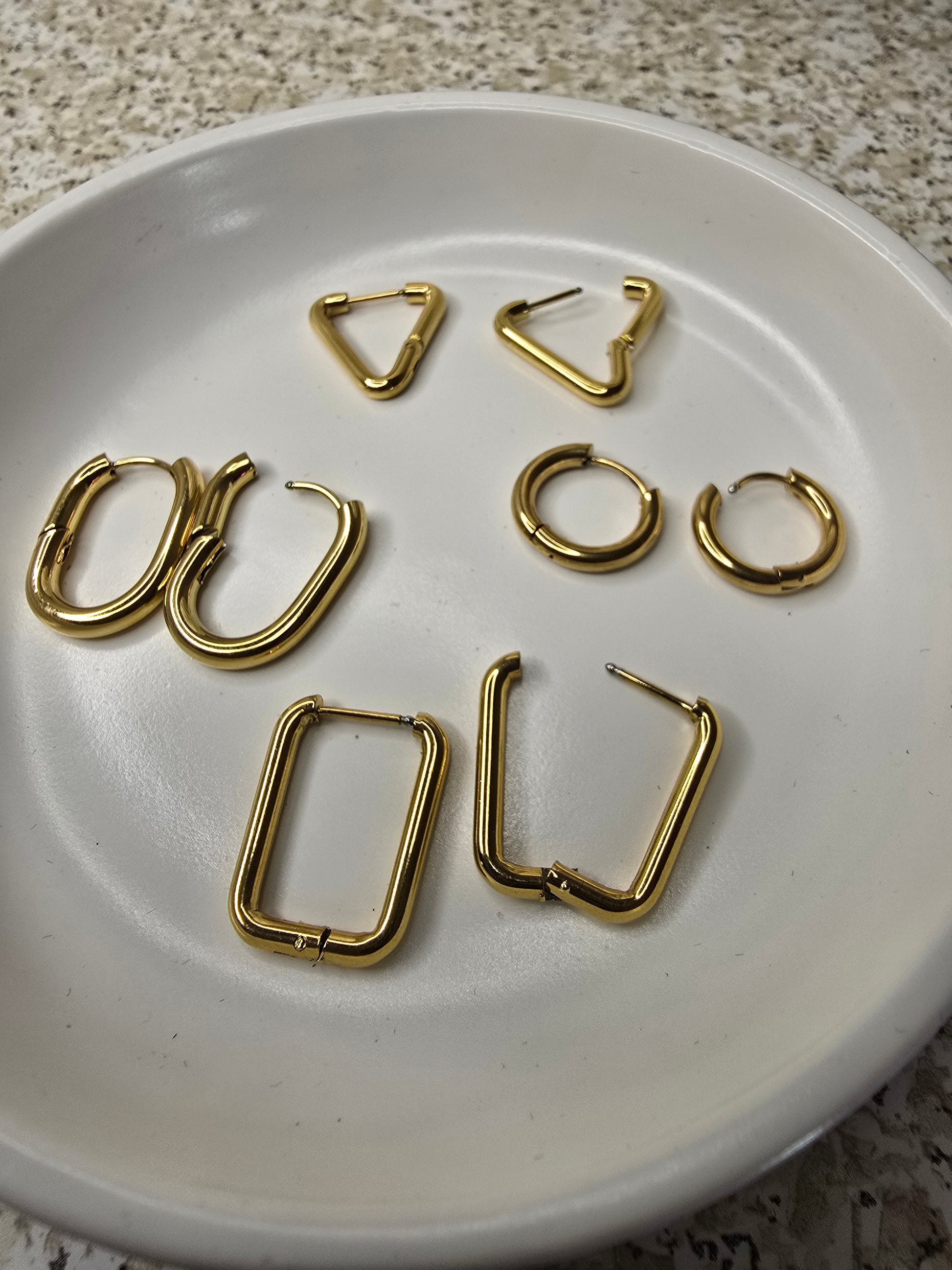 Make a statement with these sleek rectangle-shaped earrings, beautifully plated in 18K gold. Designed with a comfortable hinge style for a secure fit, these earrings are perfect for all-day wear. The rectangle shape symbolizes stability, reflecting a sense of structure and forward movement. Whether you're dressing up for a special occasion or adding a modern touch to your everyday look, these rectangle earrings will complement your style with confidence and elegance.