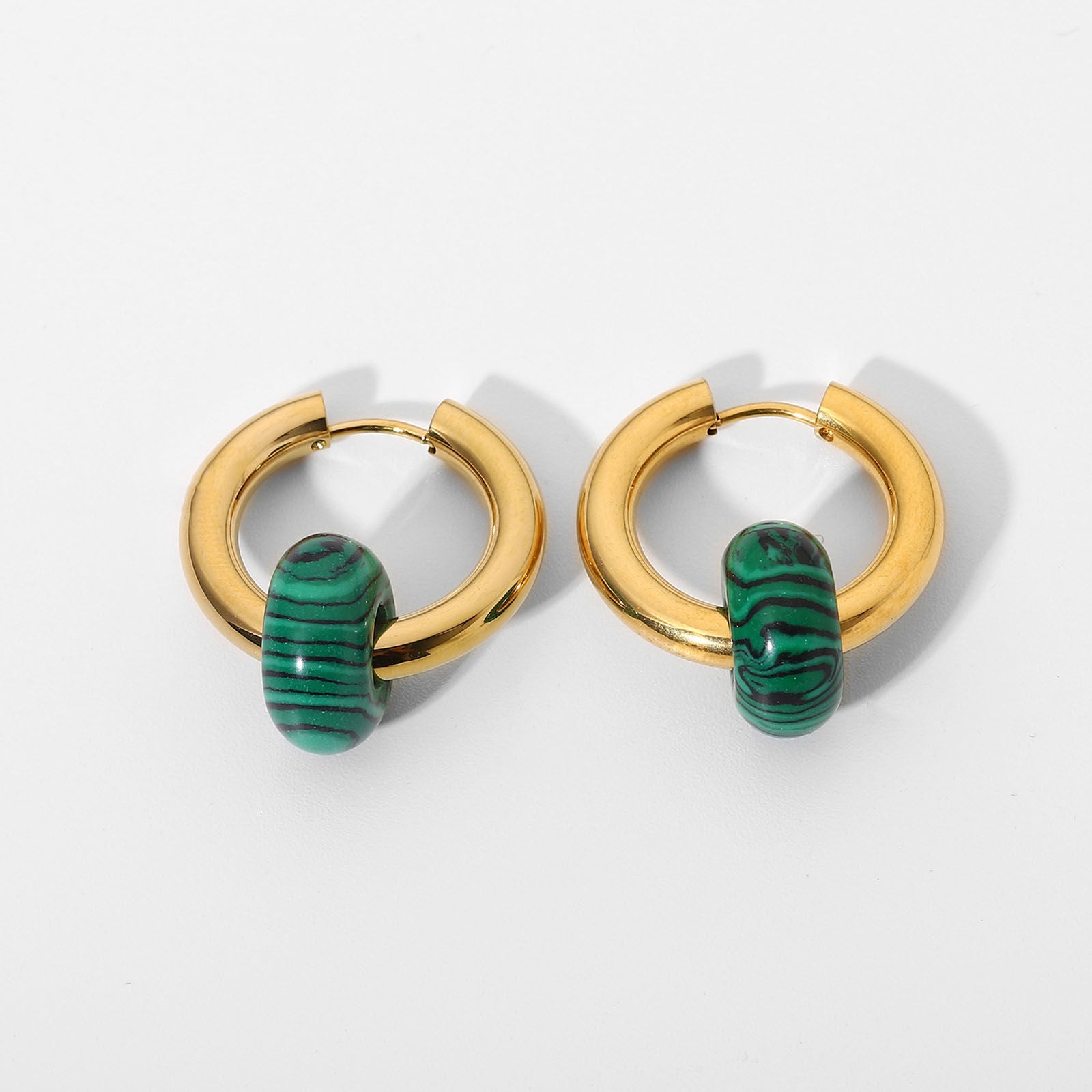 Transform your everyday with a touch of meaningful color. These 18K gold-plated huggie hoops come with removable imitation malachite donut charms—rich in swirled green tones and symbolic of growth, protection, and personal transformation.