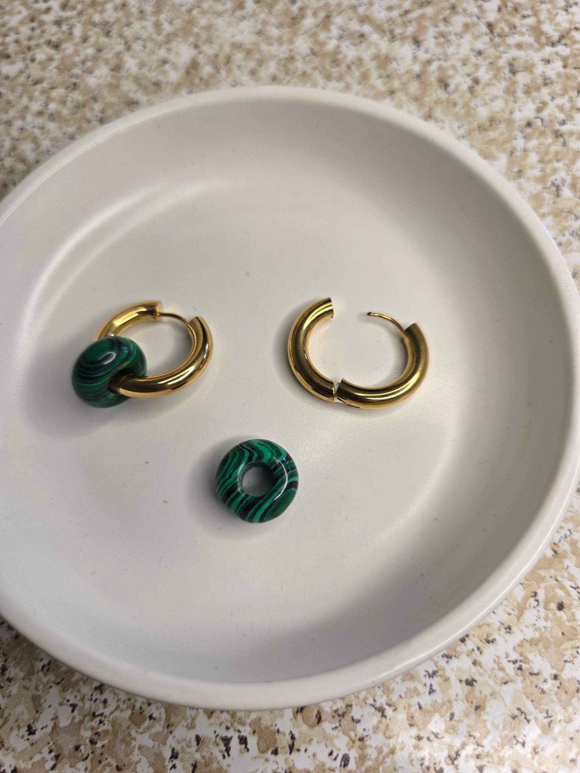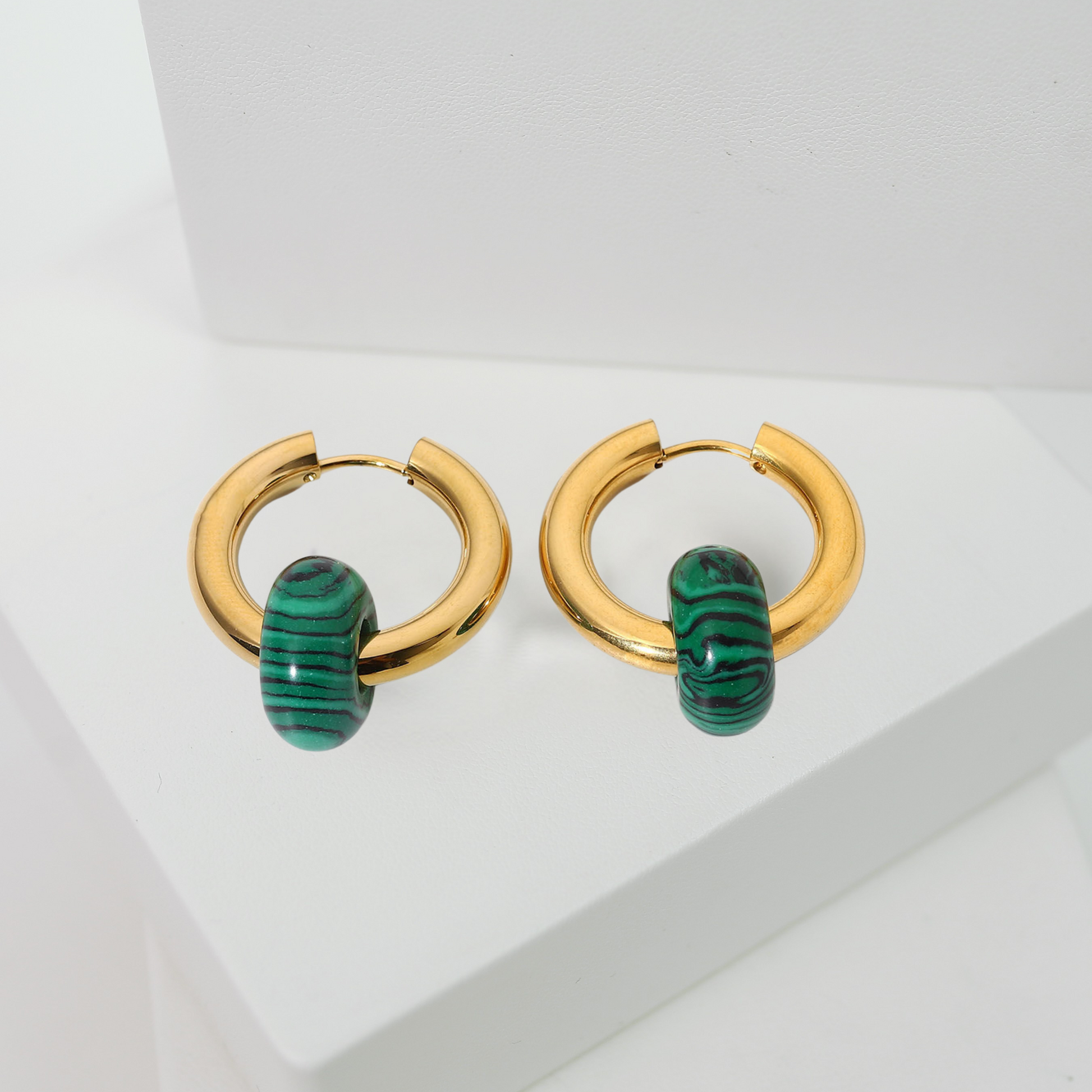 Wear the hoops solo for a clean, elevated look or add the malachite charms when you're craving a little more depth and color. It’s style that shifts with you—effortless and intentional.