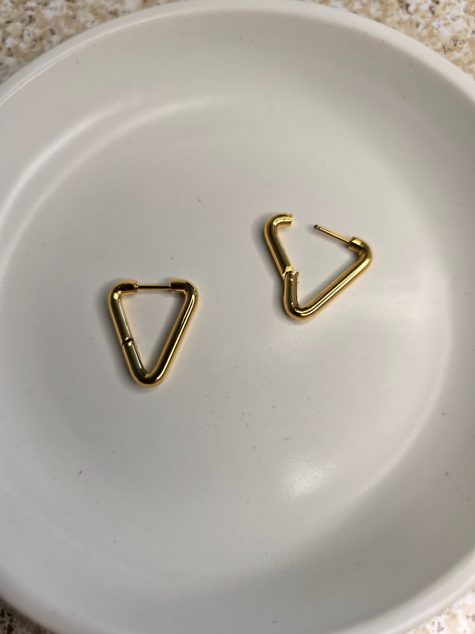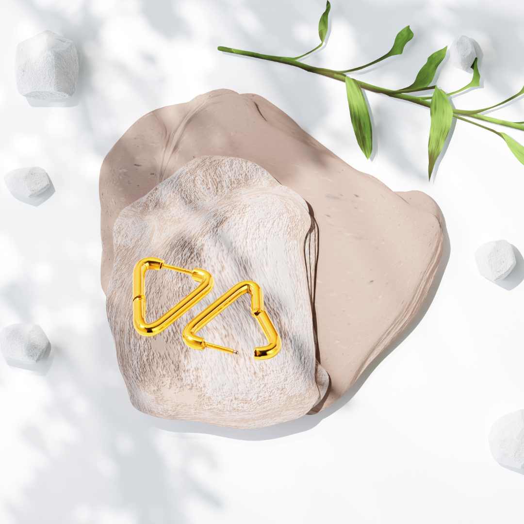 These bold, geometric huggie earrings were made to symbolize just that—personal growth, transformation, and progress. With their sleek triangle shape and rich 18K gold-plated shine, they strike the perfect balance between statement and simplicity.